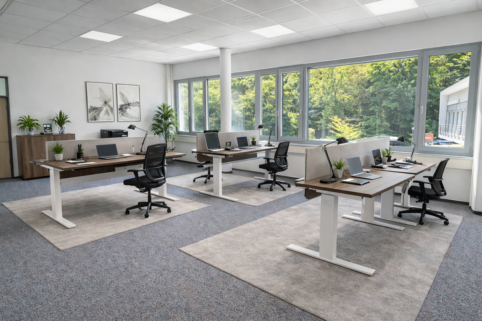 Die Büroflächen sind großzügig geschnitten und lassen sich flexibel nutzen. Durch die vorhandene Raumstruktur besteht die Möglichkeit, unterschiedliche Bereiche klar voneinander zu trennen, ohne den Charakter eines offenen, modernen Büros zu verlieren. So lassen sich unter anderem ein repräsentatives Geschäftsführerbüro, ein oder mehrere Besprechungs- bzw. Konferenzräume, strukturierte Arbeitsbereiche sowie ein separater Aufenthaltsraum für Mitarbeiter realisieren.