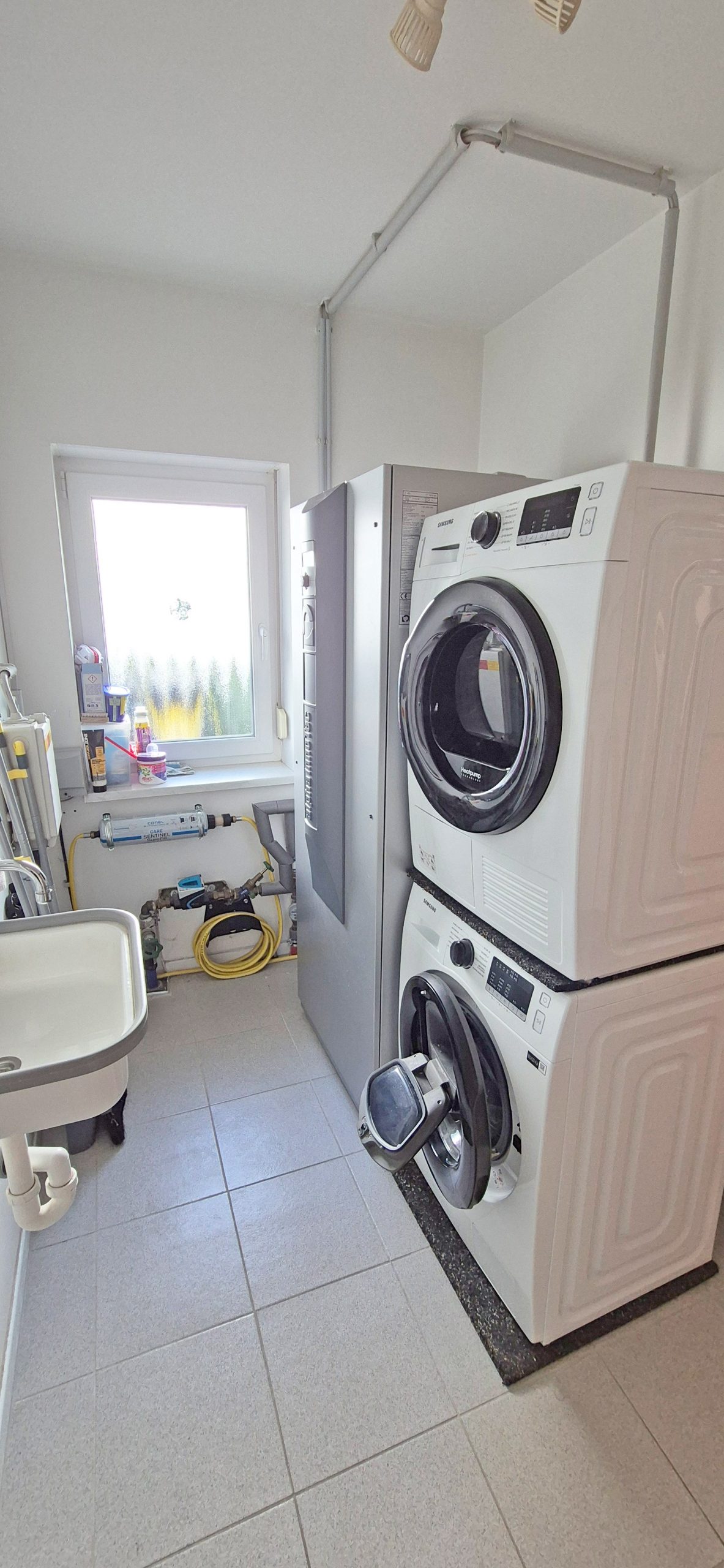 An die Küche schließt sich der Hauswirtschaftsraum an, der zusätzlichen Stauraum bietet und zugleich einen direkten Zugang zur Garage ermöglicht – praktisch und wettergeschützt.